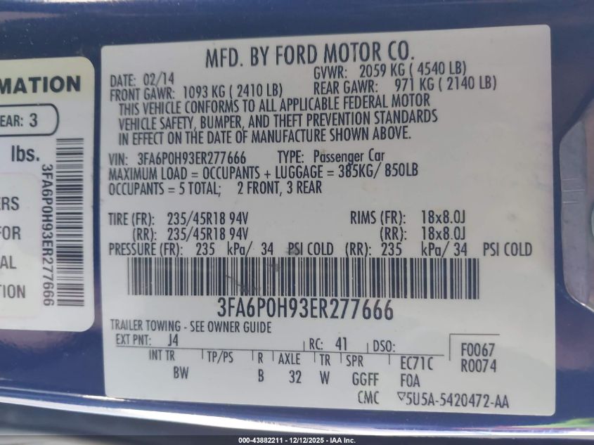 2014 FORD FUSION - 3FA6P0H93ER277666, колір - Синій, 2.0, Бензин, Передній привід із США