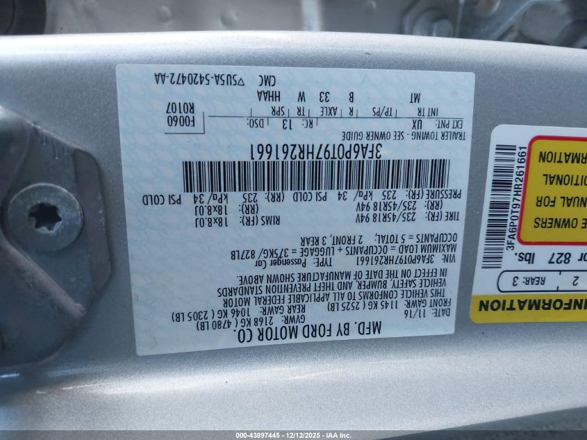 Колір СірийЦиліндри 4Привід Повний привідVIN 3FA6P0T97HR261661Стан Заводиться та їде (перевірено)Ушкодження Передня ліва