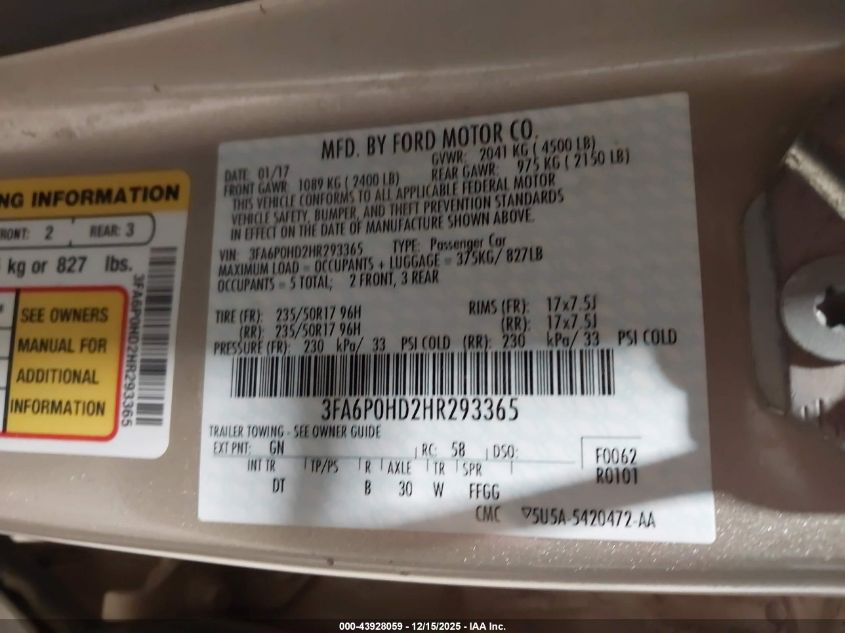 2017 FORD FUSION - 3FA6P0HD2HR293365, колір - Золотий, 1.5, Бензин, Передній привід із США