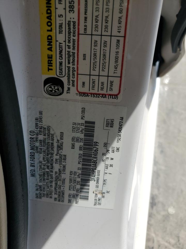 Колір БілийЦиліндри 4VIN 3FAHP0JA8CR406799Стан НевідомоУшкодження Передня або задня