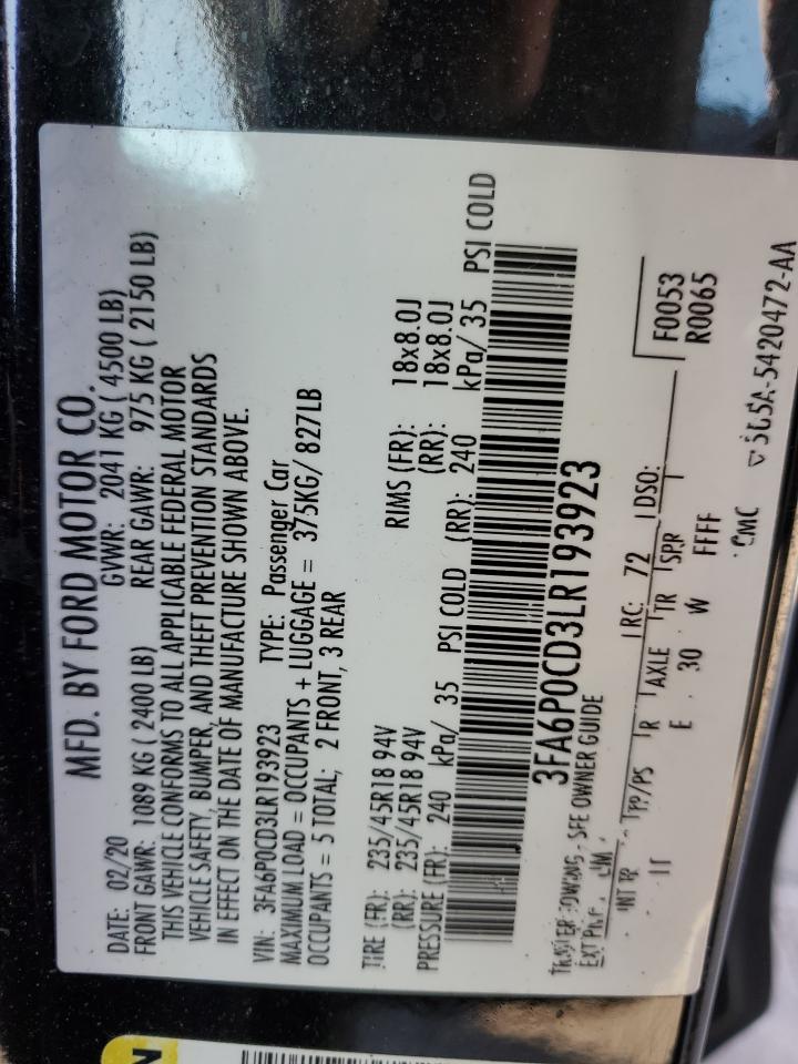 2020 FORD FUSION - 3FA6P0CD3LR193923, колір - Чорний, 1.5, Бензин, із США