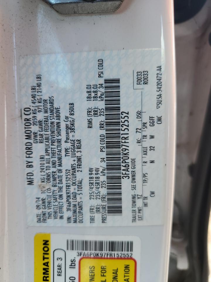 2015 FORD FUSION - 3FA6P0K97FR152552, колір - Білий, 2.0, Бензин, із США