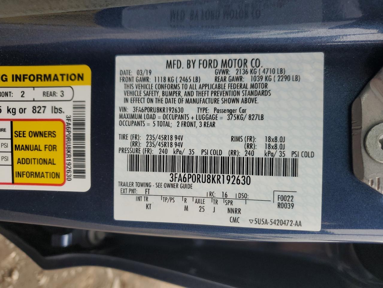 Колір СинійЦиліндри 4VIN 3FA6P0RU8KR192630Стан Заводиться та їде (перевірено)Ушкодження Передня або задня