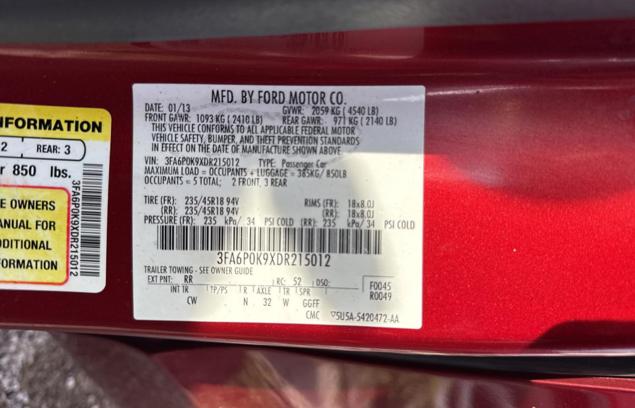 Колір БордовийЦиліндри 4VIN 3FA6P0K9XDR215012Стан Заводиться та їде (перевірено)Ушкодження НезначніДата аукціона 2025-10-09