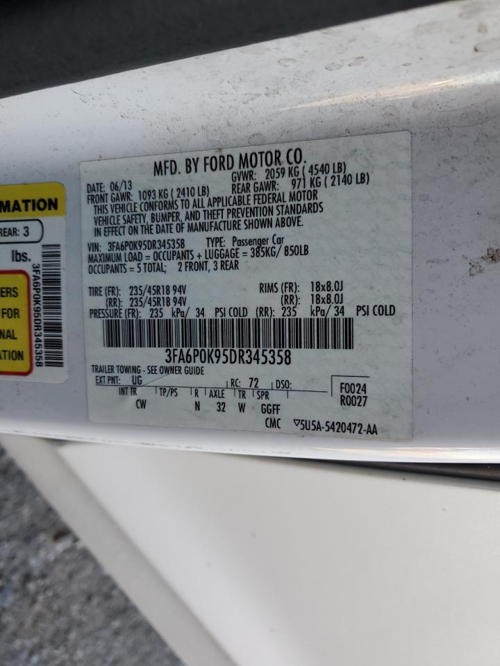 2013 FORD FUSION - 3FA6P0K95DR345358, колір - Білий, 2.0, Бензин, із США