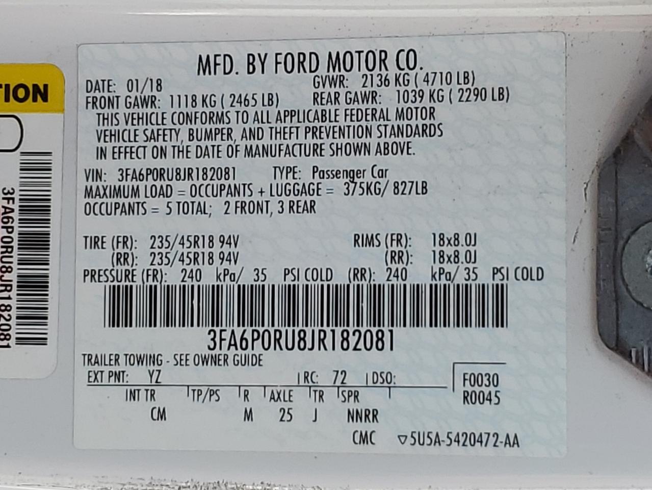 Колір БілийЦиліндри 4VIN 3FA6P0RU8JR182081Стан НевідомоУшкодження НезначніДата аукціона 2025-10-08