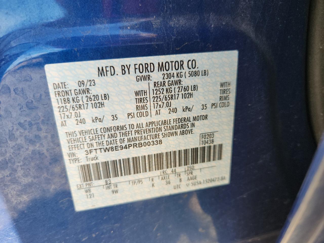 Колір СинійЦиліндри 4VIN 3FTTW8E94PRB00338Стан Заводиться та їде (перевірено)Ушкодження З боківДата аукціона 2025-10-08