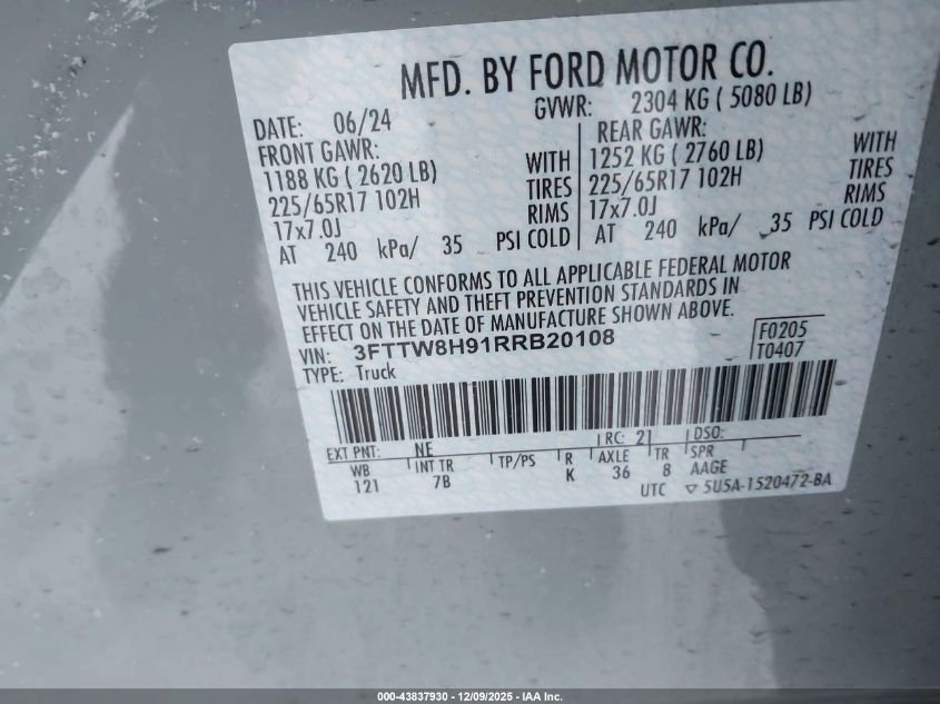 2024 FORD MAVERICK - 3FTTW8H91RRB20108, колір - Синій, 2.0, Бензин, Передній привід із США