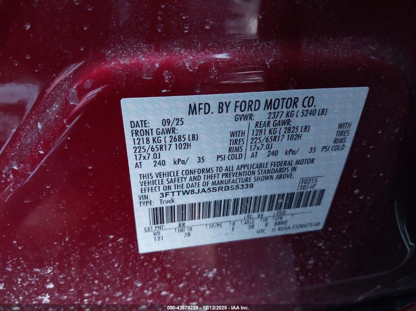 2025 FORD MAVERICK - 3FTTW8JA5SRB55339, колір - Червоний, 2.0, Бензин, Повний привід із США