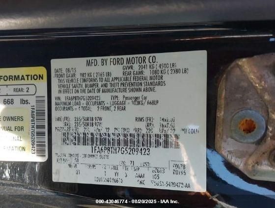Колір ЧорнийЦиліндри 4Привід Задній привідVIN 1FA6P8TH7G5209423Стан НевідомоУшкодження По всьому авто