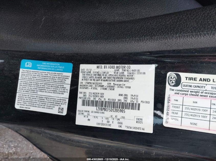 2013 FORD MUSTANG - 1ZVBP8CF5D5205905, колір - Чорний, 5.0, Бензин, Задній привід із США