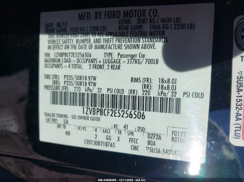 Колір ЧорнийЦиліндри 8Привід Задній привідVIN 1ZVBP8CF2E5256506Стан Заводиться та їде (перевірено)Ушкодження Передня або задня