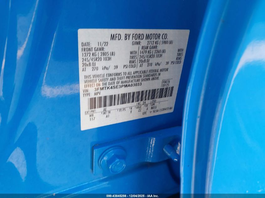 2023 FORD MUSTANG MACH-E - 3FMTK4SE3PMA03033, колір - Синій, 0.0, Електричний, Повний привід із США