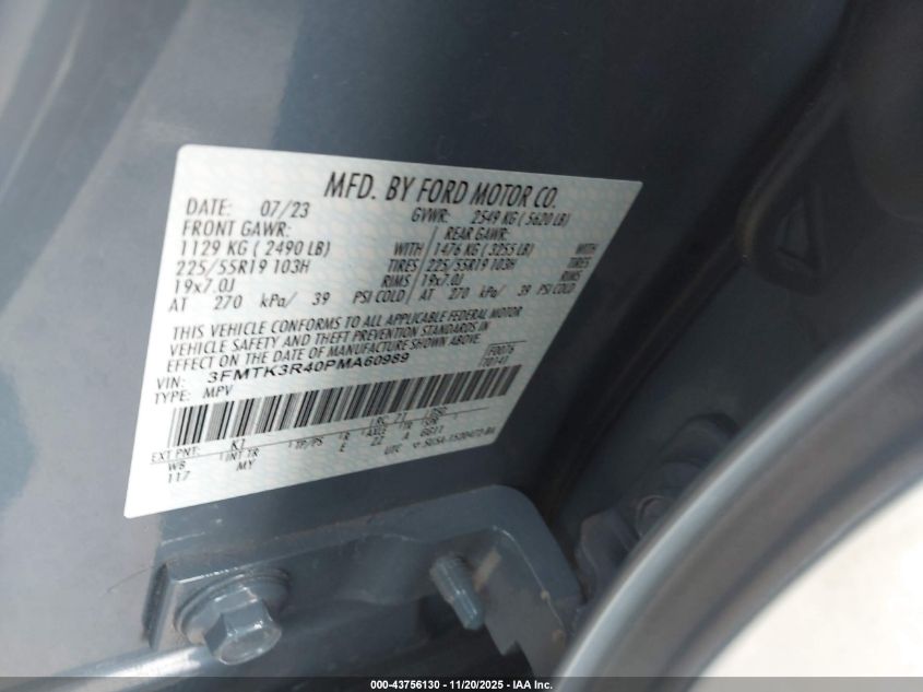 Колір СинійVIN 3FMTK3R40PMA60989Стан НевідомоУшкодження Права сторона
