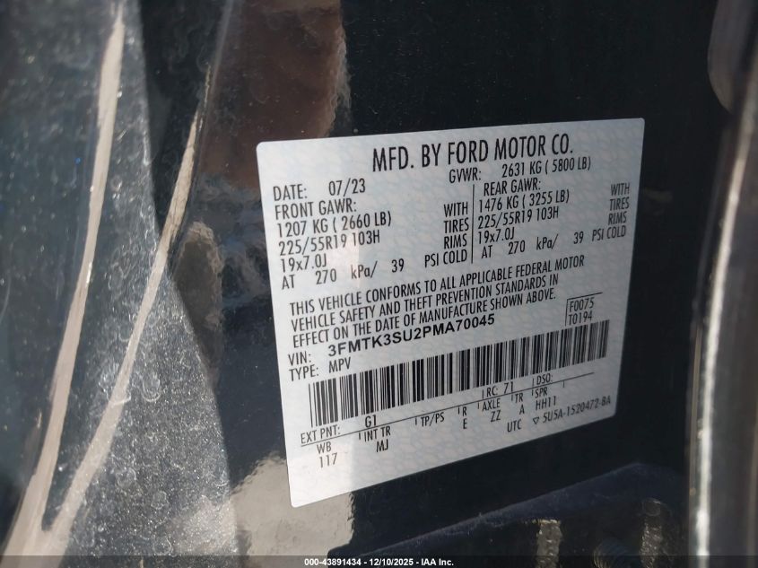 2023 FORD MUSTANG MACH-E - 3FMTK3SU2PMA70045, колір - Чорний, 0.0, Електричний, Повний привід із США