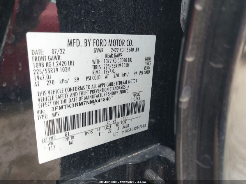 Колір ЧорнийVIN 3FMTK3RM7NMA41840Стан Заводиться та їде (перевірено)Ушкодження Передня або задня