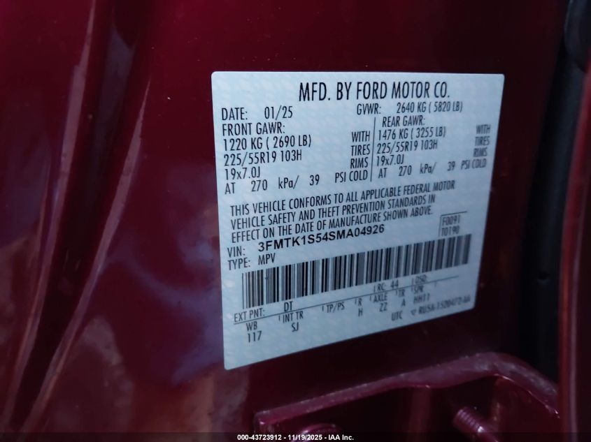 2025 FORD MUSTANG MACH-E - 3FMTK1S54SMA04926, колір - Бургундія, 0.0, Електричний, Повний привід із США
