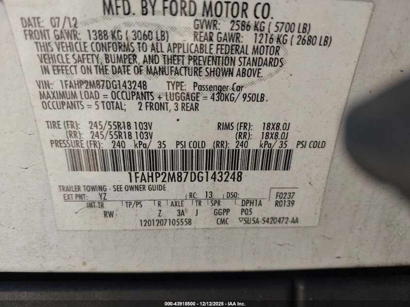 Колір БілийЦиліндри 6Привід Повний привідVIN 1FAHP2M87DG143248Стан Заводиться та їде (перевірено)Ушкодження Передня або задня