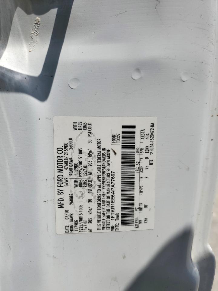 2010 FORD RANGER - 1FTKR1EE6APA77697, колір - Білий, 4.0, Бензин, Задній привід із США