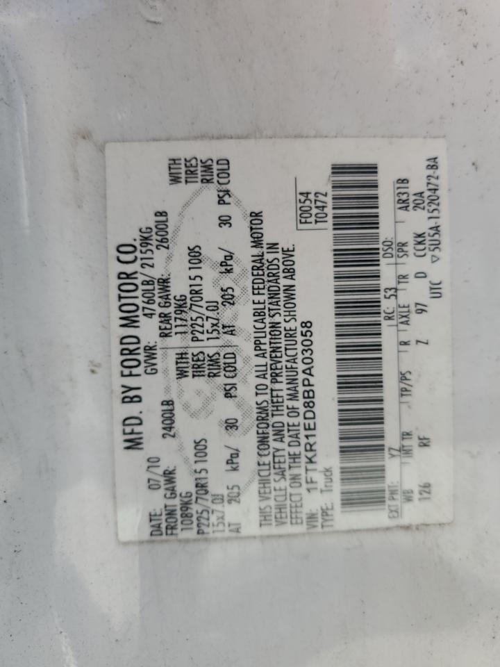 2011 FORD RANGER - 1FTKR1ED8BPA03058, колір - Білий, 2.3, Бензин, Задній привід із США
