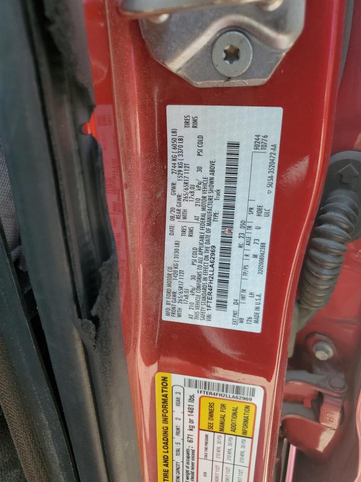 2020 FORD RANGER - 1FTER4FH2LLA62969, колір - Червоний, 2.3, Бензин, 4x4 з заднім приводом із США