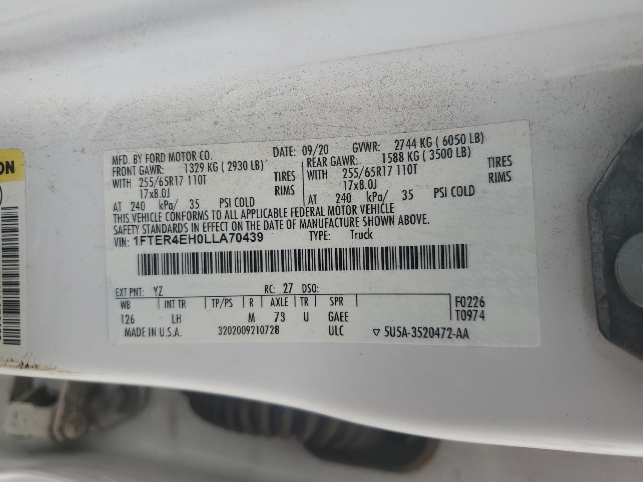 2020 FORD RANGER - 1FTER4EH0LLA70439, колір - Білий, 2.3, Бензин, Задній привід із США