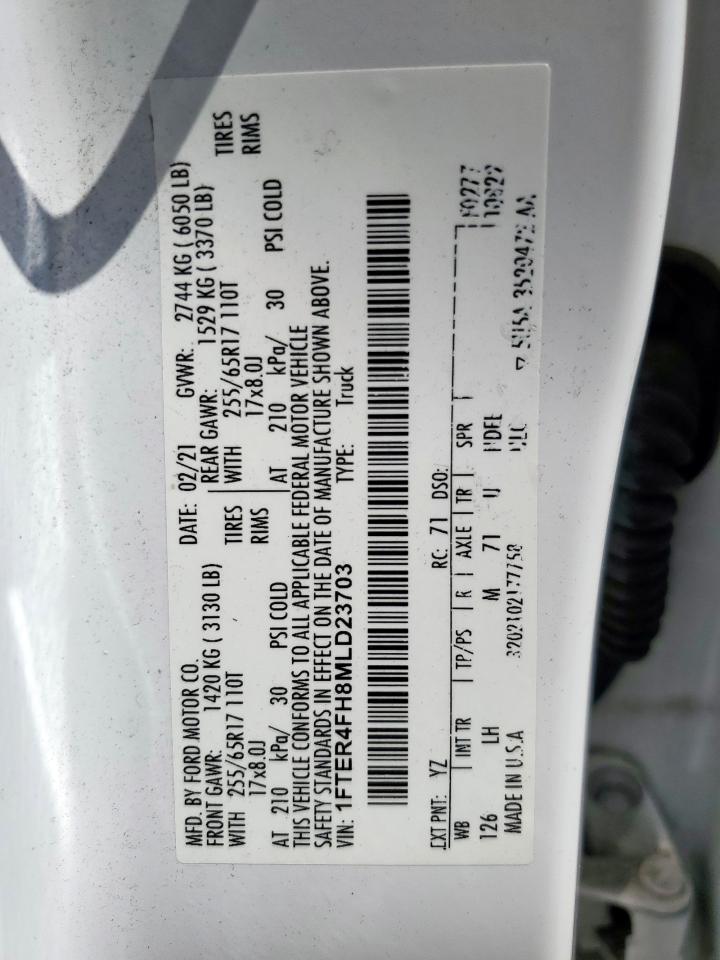 2021 FORD RANGER - 1FTER4FH8MLD23703, колір - Білий, 2.3, Бензин, 4x4 з заднім приводом із США