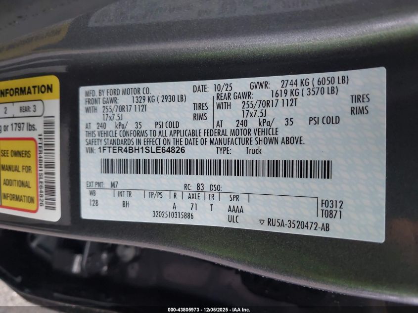 2025 FORD RANGER - 1FTER4BH1SLE64826, колір - , 2.3, Бензин, із США