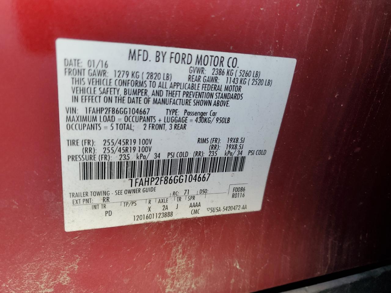 2016 FORD TAURUS - 1FAHP2F86GG104667, колір - Червоний, 3.5, Бензин, із США