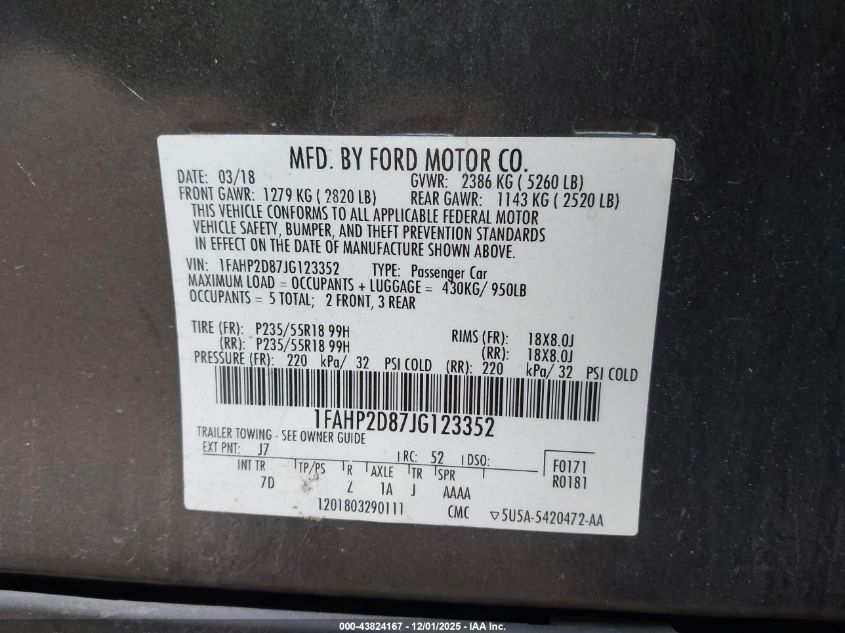 2018 FORD TAURUS SEL