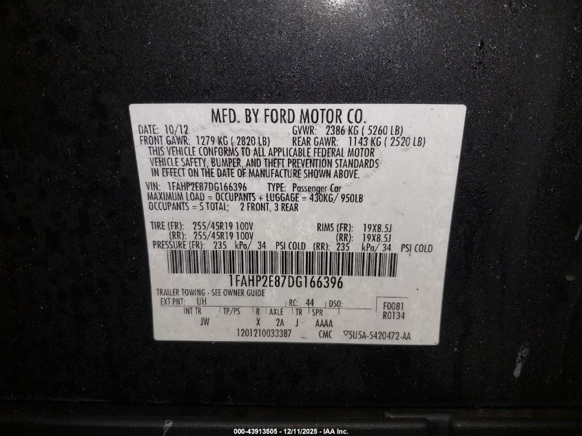 2013 FORD TAURUS - 1FAHP2E87DG166396, колір - Чорний, 3.5, Бензин, Передній привід із США