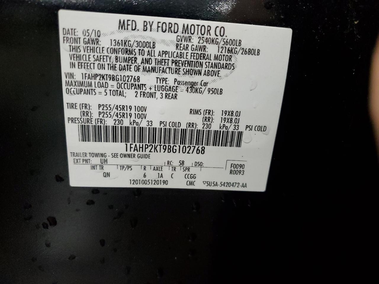2011 FORD TAURUS - 1FAHP2KT9BG102768, колір - Чорний, 3.5, Бензин, Повний привід із США