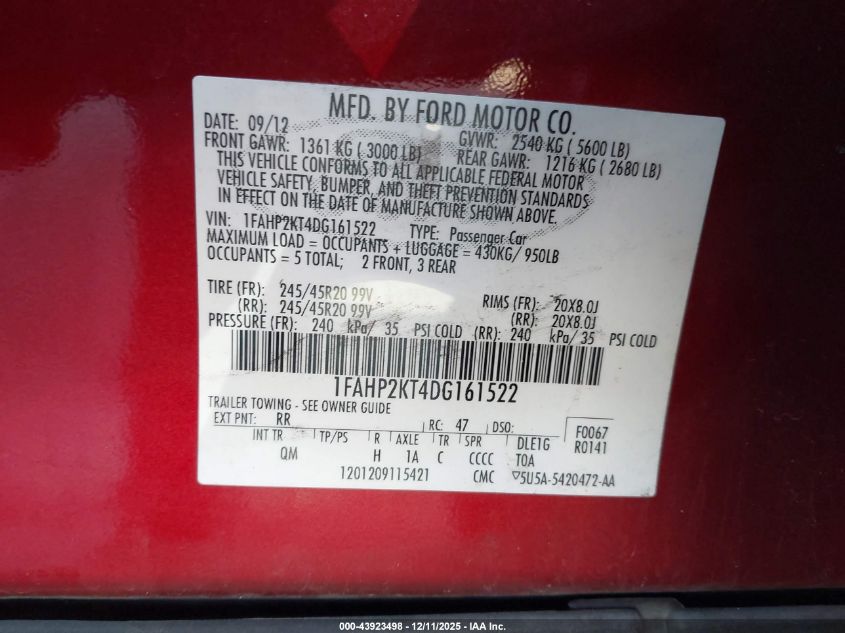 Колір ЧервонийЦиліндри 6Привід Повний привідVIN 1FAHP2KT4DG161522Стан Заводиться та їде (перевірено)Ушкодження Передня або задня