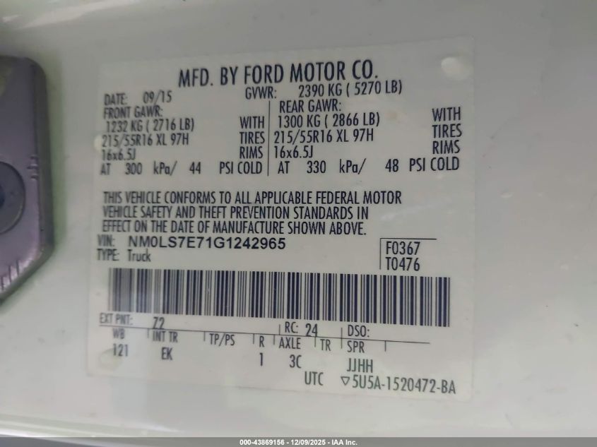 Колір БілийЦиліндри 4Привід Передній привідVIN NM0LS7E71G1242965Стан Заводиться та їде (перевірено)Ушкодження Передня і задня