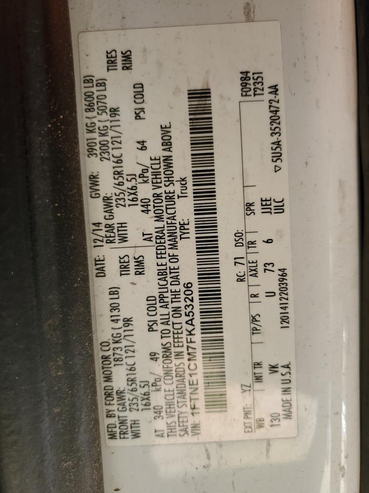 2015 FORD TRANSIT - 1FTNE1CM7FKA53206, колір - Білий, 3.7, Бензин, Задній привід із США