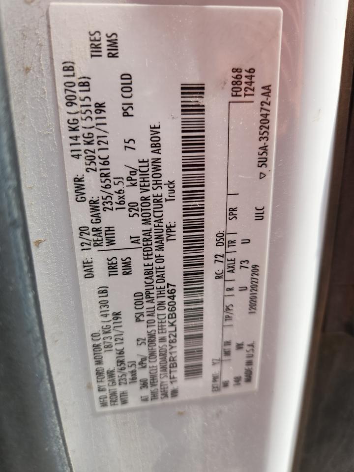 2020 FORD TRANSIT - 1FTBR1Y82LKB60467, колір - Білий, 3.5, Бензин, Задній привід із США