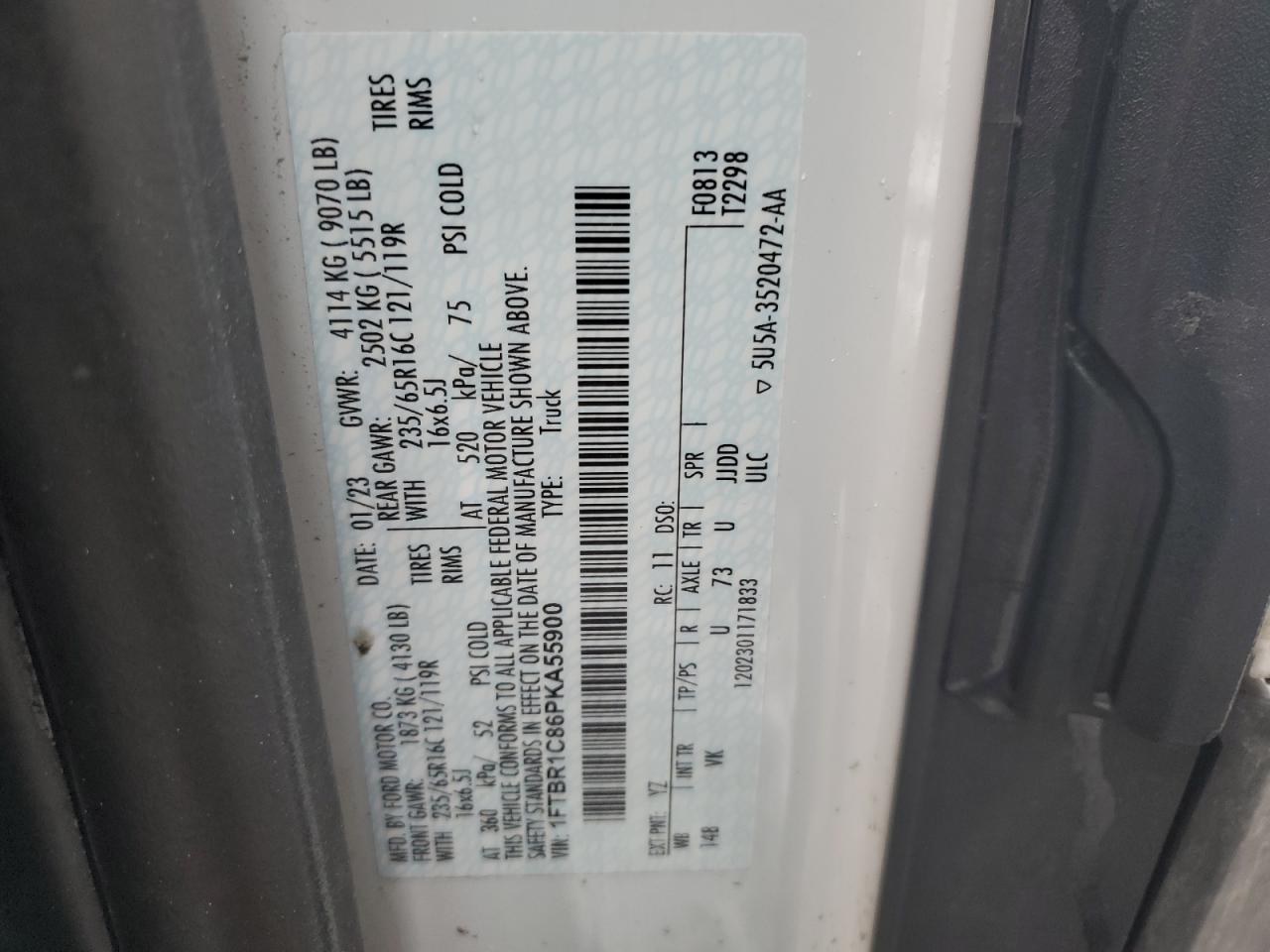 2023 FORD TRANSIT - 1FTBR1C86PKA55900, колір - Білий, 3.5, Бензин, Задній привід із США