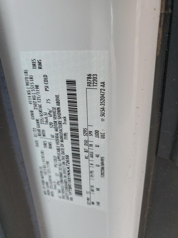 2022 FORD TRANSIT - 1FTBR1X81NKA72658, колір - Білий, 3.5, Бензин, Задній привід із США