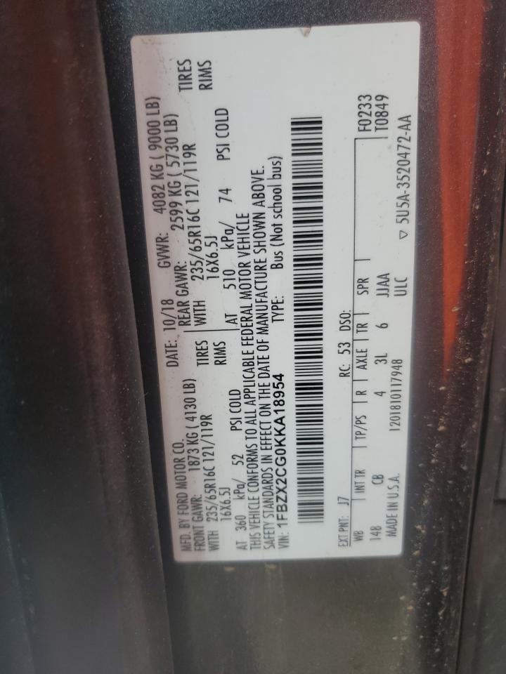 2019 FORD TRANSIT - 1FBZX2CG0KKA18954, колір - Деревне вугілля, 3.5, Бензин, Задній привід із США