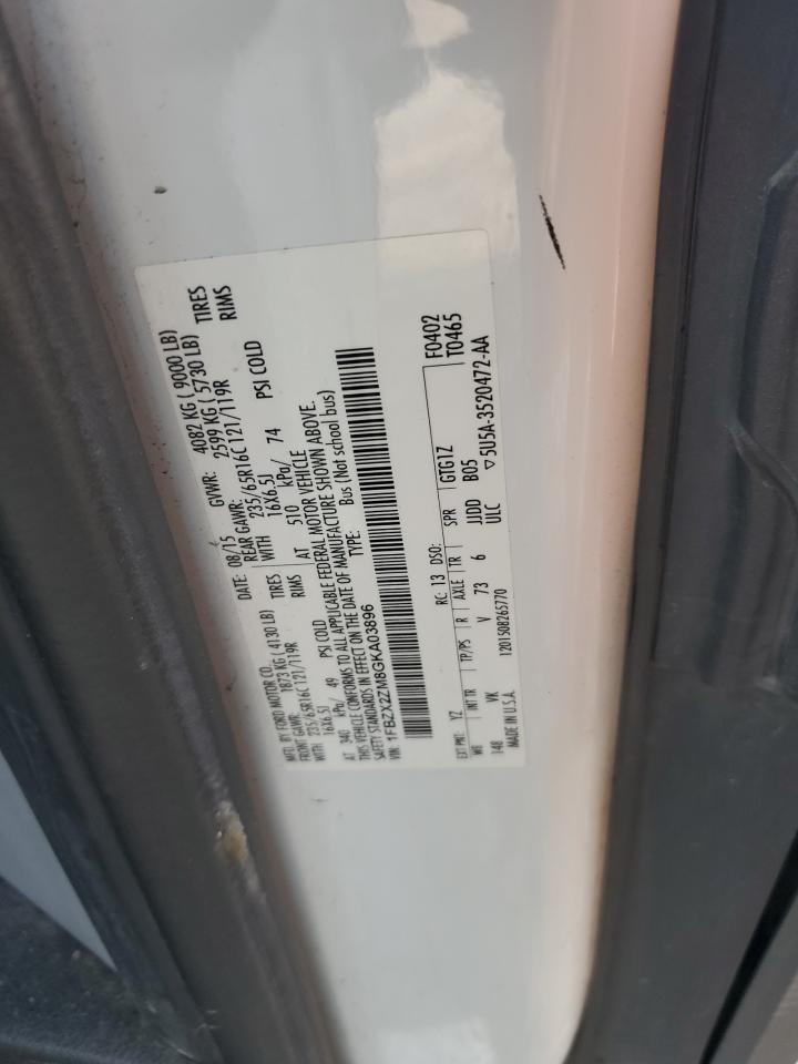 2016 FORD TRANSIT - 1FBZX2ZM8GKA03896, колір - Білий, 3.7, Бензин, Задній привід із США