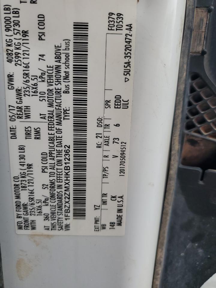 2017 FORD TRANSIT - 1FBZX2ZMXHKB12362, колір - Білий, 3.7, Бензин, Задній привід із США