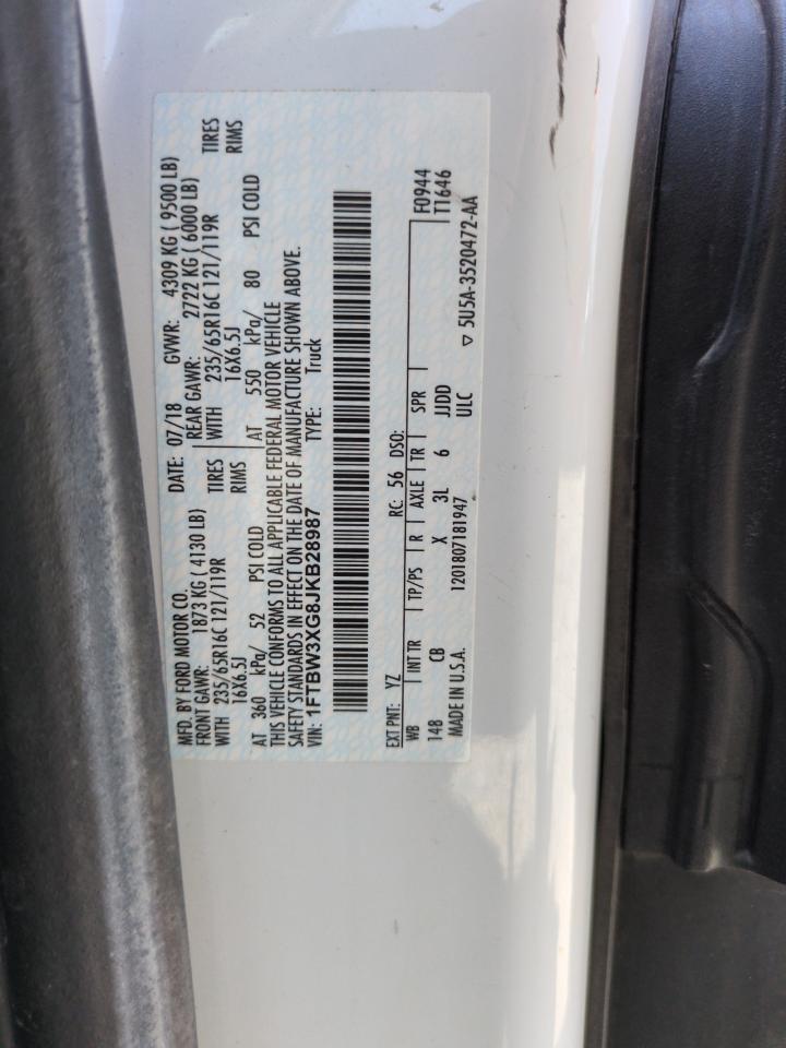 2018 FORD TRANSIT - 1FTBW3XG8JKB28987, колір - Білий, 3.5, Бензин, Задній привід із США