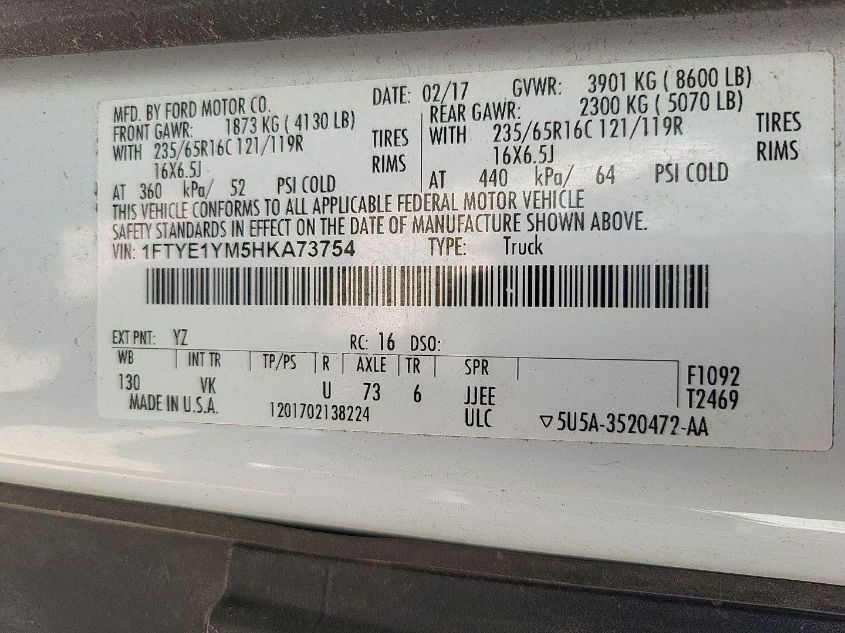 2017 FORD TRANSIT - 1FTYE1YM5HKA73754, колір - , 3.7, Бензин, Задній привід із США
