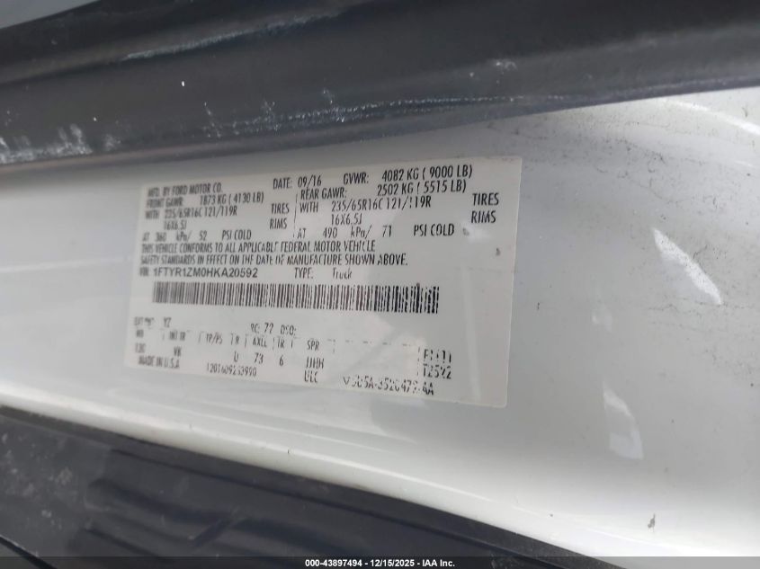 2017 FORD TRANSIT - 1FTYR1ZM0HKA20592, колір - Білий, 3.7, Бензин, Задній привід із США