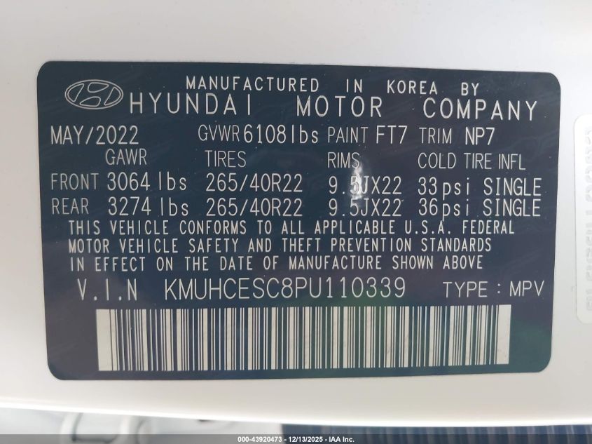 Колір БілийЦиліндри 6Привід Повний привідVIN KMUHCESC8PU110339Стан СтаціонарноУшкодження Передня або задня