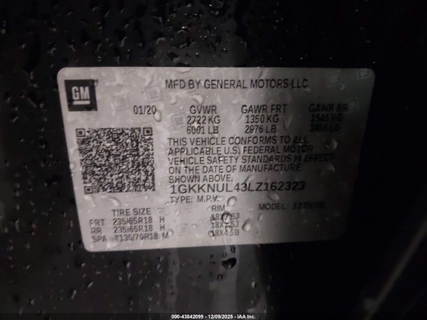 2020 GMC ACADIA - 1GKKNUL43LZ162323, колір - Чорний, 2.0, Бензин, Повний привід із США