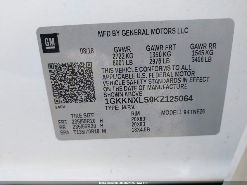 Колір БежевийЦиліндри 6Привід Повний привідVIN 1GKKNXLS9KZ125064Стан Заводиться та їде (перевірено)Ушкодження По всьому автоДата аукціона 2025-12-18
