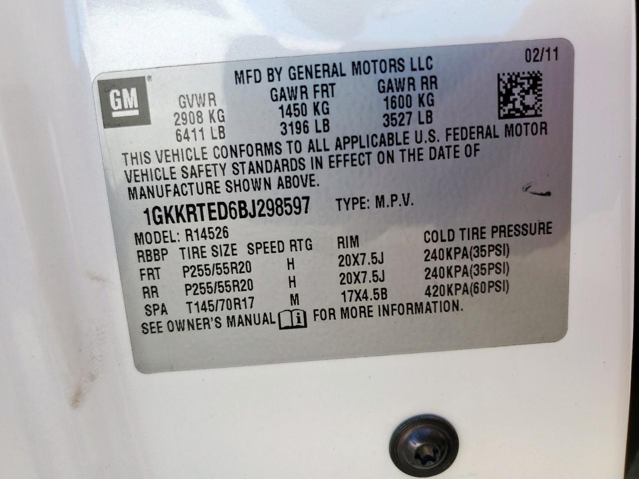 Колір БілийЦиліндри 6VIN 1GKKRTED6BJ298597Стан Заводиться та їде (перевірено)Ушкодження Незначні