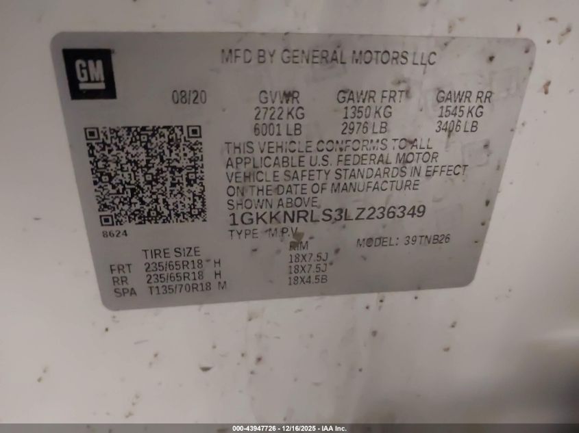 Колір Циліндри 6Привід Повний привідVIN 1GKKNRLS3LZ236349Стан НевідомоУшкодження Невідомо