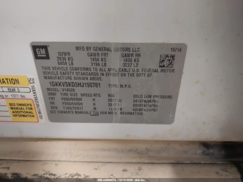 2017 GMC ACADIA - 1GKKVSKD3HJ190781, колір - Білий, 3.6, Бензин, Повний привід із США